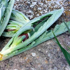 Il primo carciofo che si taglia dalla pianta del Carciofo violetto di Sant'Erasmo
