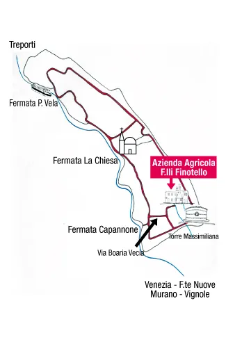 Oppure per chi è munito di barca, l'Azienda è facilmente raggiungibile entrando nella canaletta adiacente alla Torre Massimiliana.